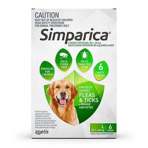 Simparica Chewables 80mg For Large Dogs 20.1-40kg (Green) 12 Doses