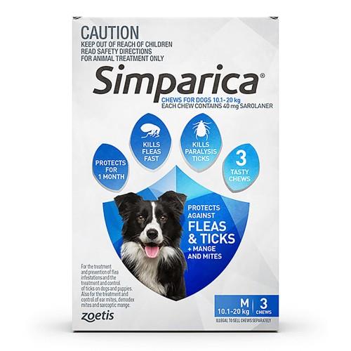 Simparica Chewables 40mg For Medium Dogs 10.1-20kg (Blue) 3 Doses